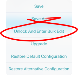 Alternatively, you can tap on the Application Menu button (top-right hand corner ) and select Unlock And Enter Bulk Edit — image below.