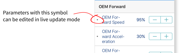When in live edit mode, changes to parameters take immediate effect, changing the performance of the wheelchair immediately.