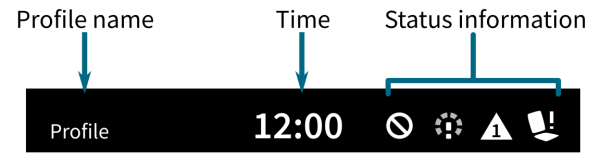 Three battery conditions are shown on the right-hand side of the status bar. These are: