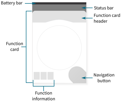 Typically, the user interacts with the REM400 and REM500 through a function card. With a function card active, the touch screen includes the following components: